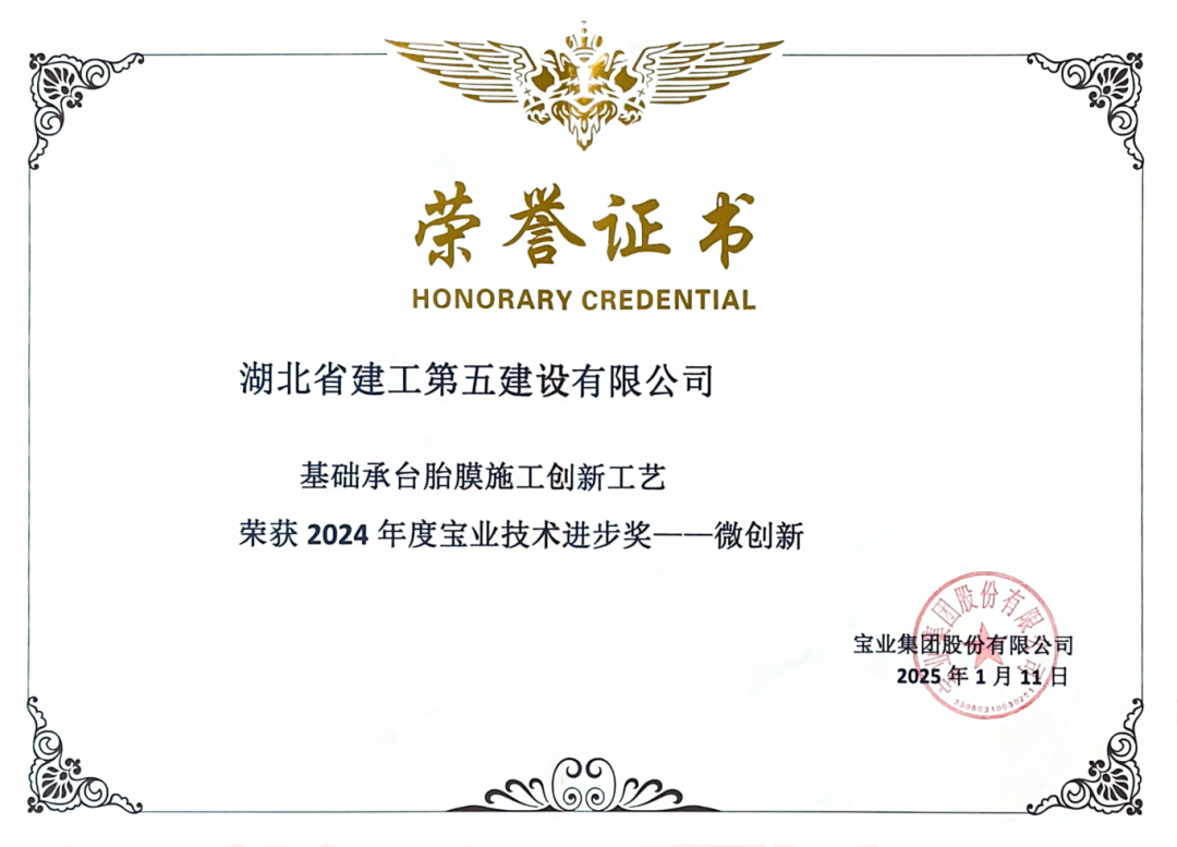 • 湖北省建工第五建設(shè)有限公司榮獲寶業(yè)集團(tuán)2024年度寶業(yè)技術(shù)進(jìn)步獎微創(chuàng)新獎